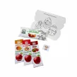 W środku 3 owocowe przekąski w różnych smakach + zadanie + tatuaż.